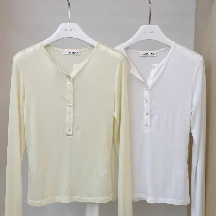 Camisa De Lana Tencel Para Mujer, Estilo Nuevo De Otoño 2025, Sencilla, Combinable, De Color Liso, Con Cuello Redondo Y Hebilla, Para Uso Exterior, Moda O6sw