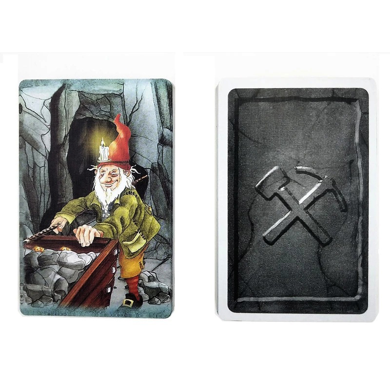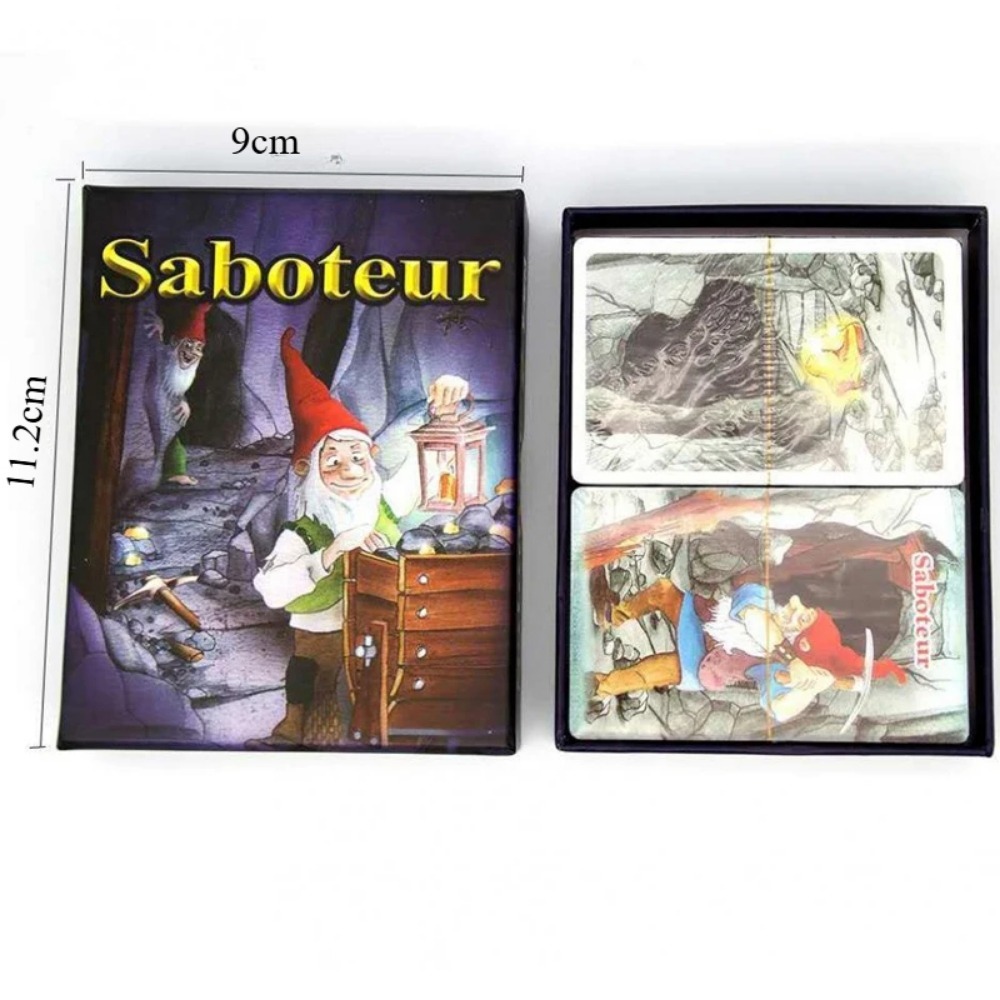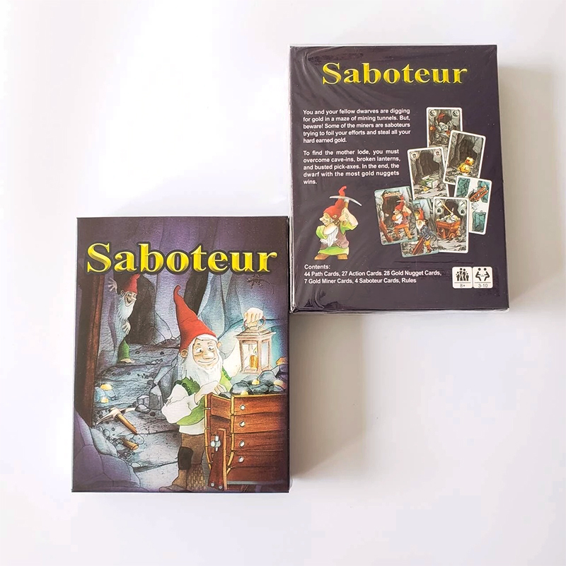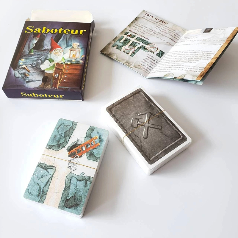 Cartas del juego Saboteur: un juego de mesa para excavar en la mina de oro de enanos, versión en inglés.