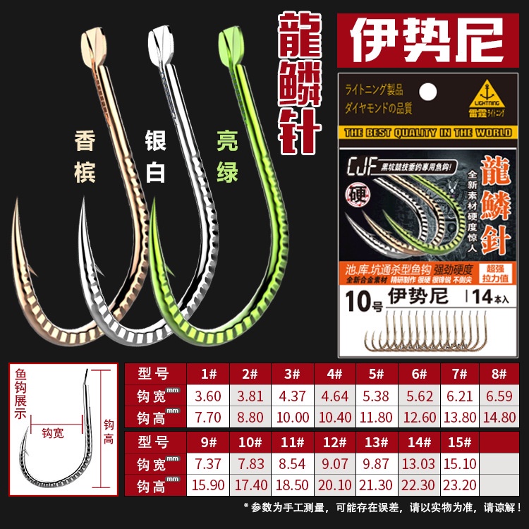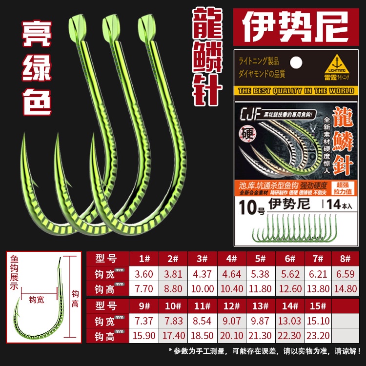 Hlur Dragón Escala Aguja Lin Espina Acero Resistente Iseni Gancho De Pescado 14 Piezas Bolsa