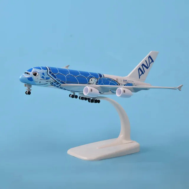 16CM 20CM Aleación De Juguete De Metal Japón ANA Airbus A380 Cartoon Sea Turtle Airlines Diecast Avión Modelo Verde Naranja Azul