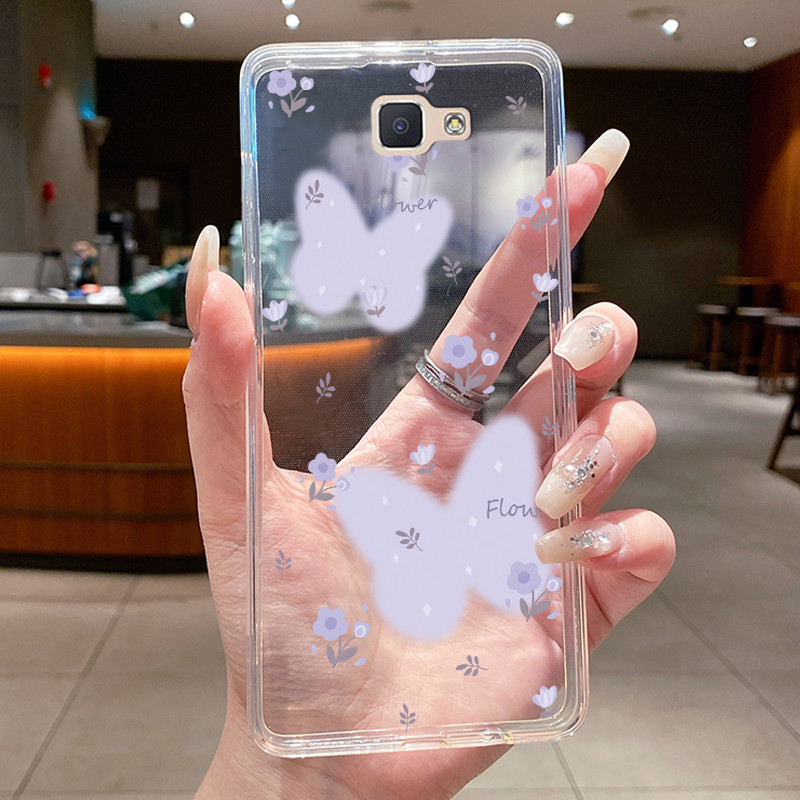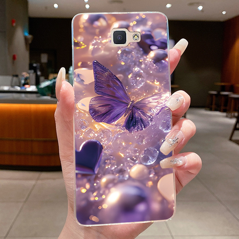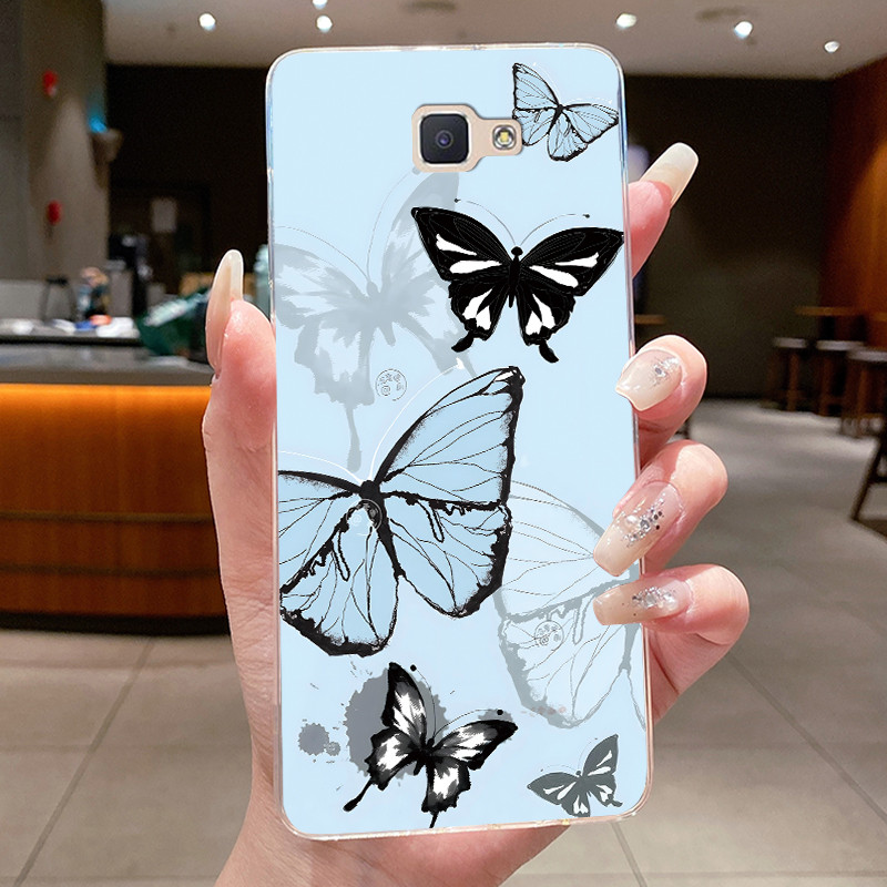 Funda Para Samsung Galaxy J5 Prime G570 On5 (2016-)/J7 G610 On7 Hermosa Mariposa De Flores Celular Carcasa De Silicona Suave Transparente De TPU Con Cubierta De Gelatina