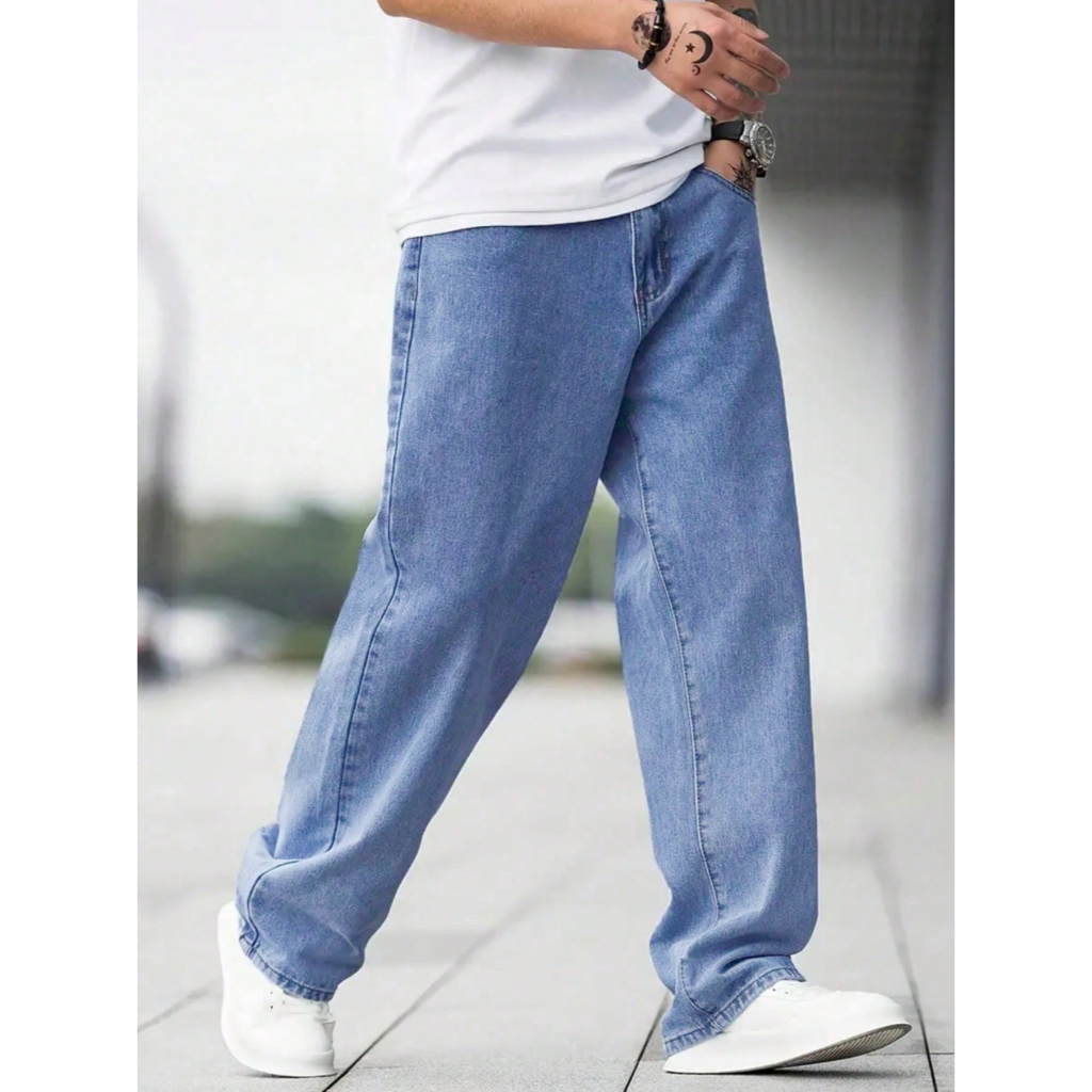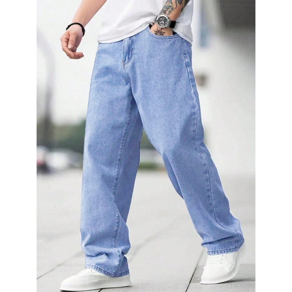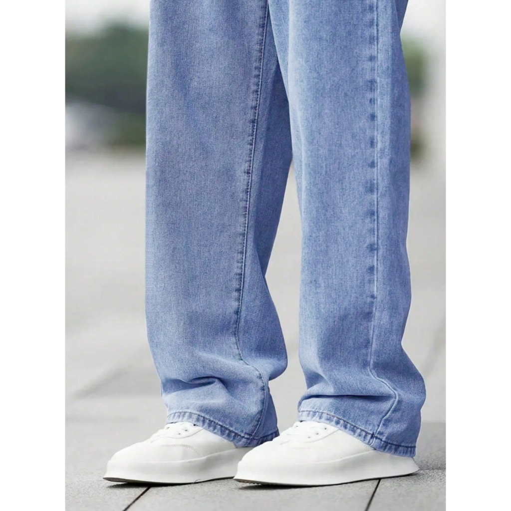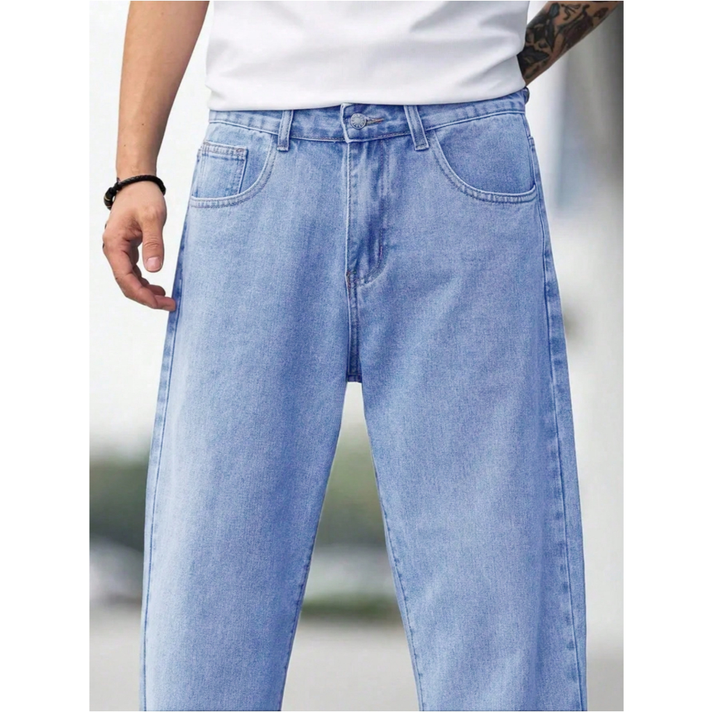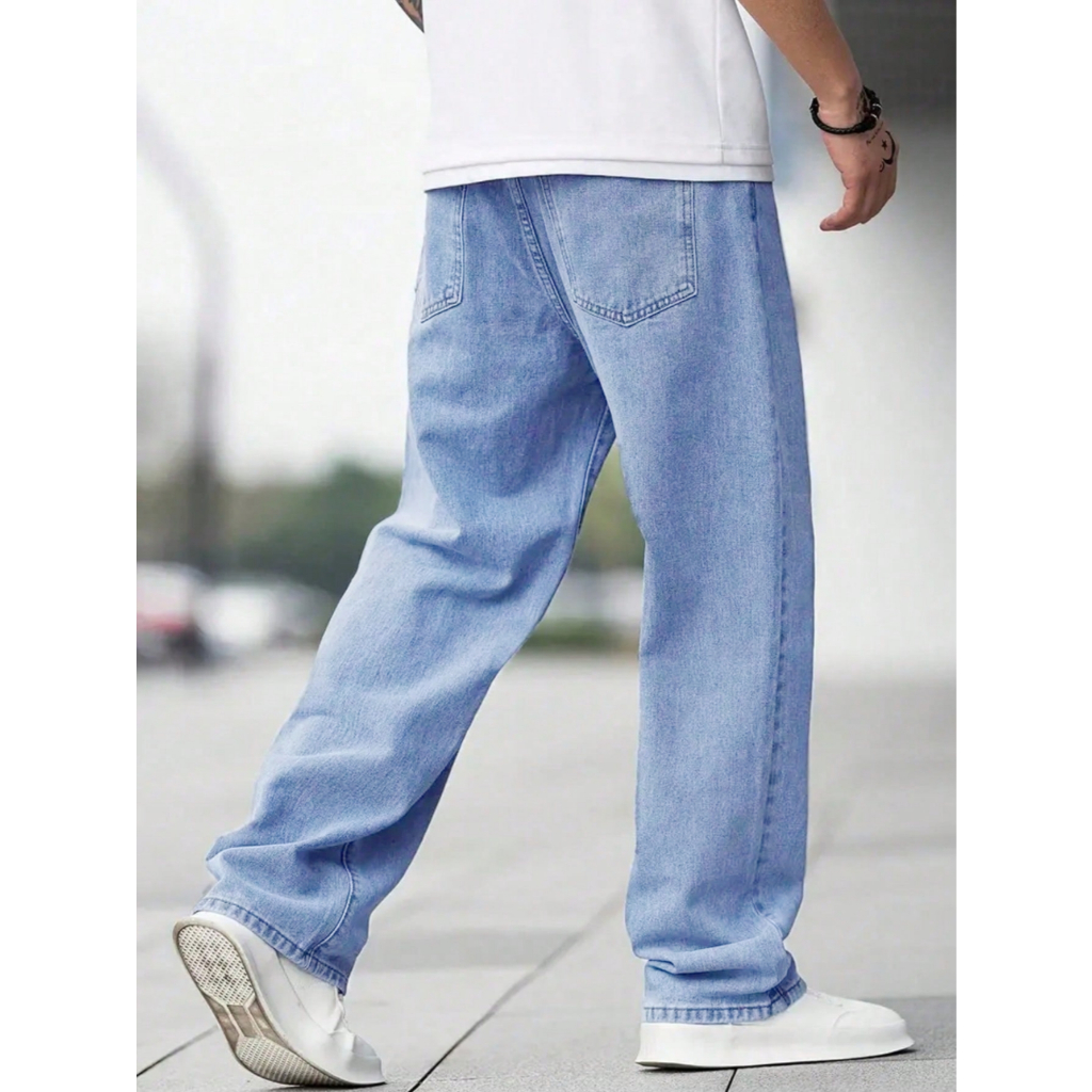Vaqueros Lala Panda Rectos , Sueltos Y Azules Claros Para Hombre-Para Estudiantes , Modernos Y De Moda . YL01