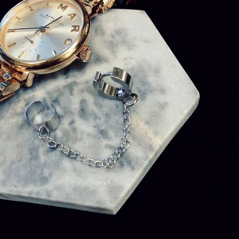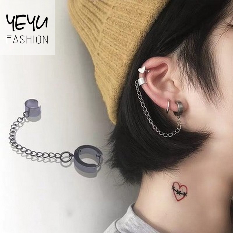 cool diablo simple cadena de oreja abrazaderas de hueso niñas bungee pendientes de tuerca sin piercing
