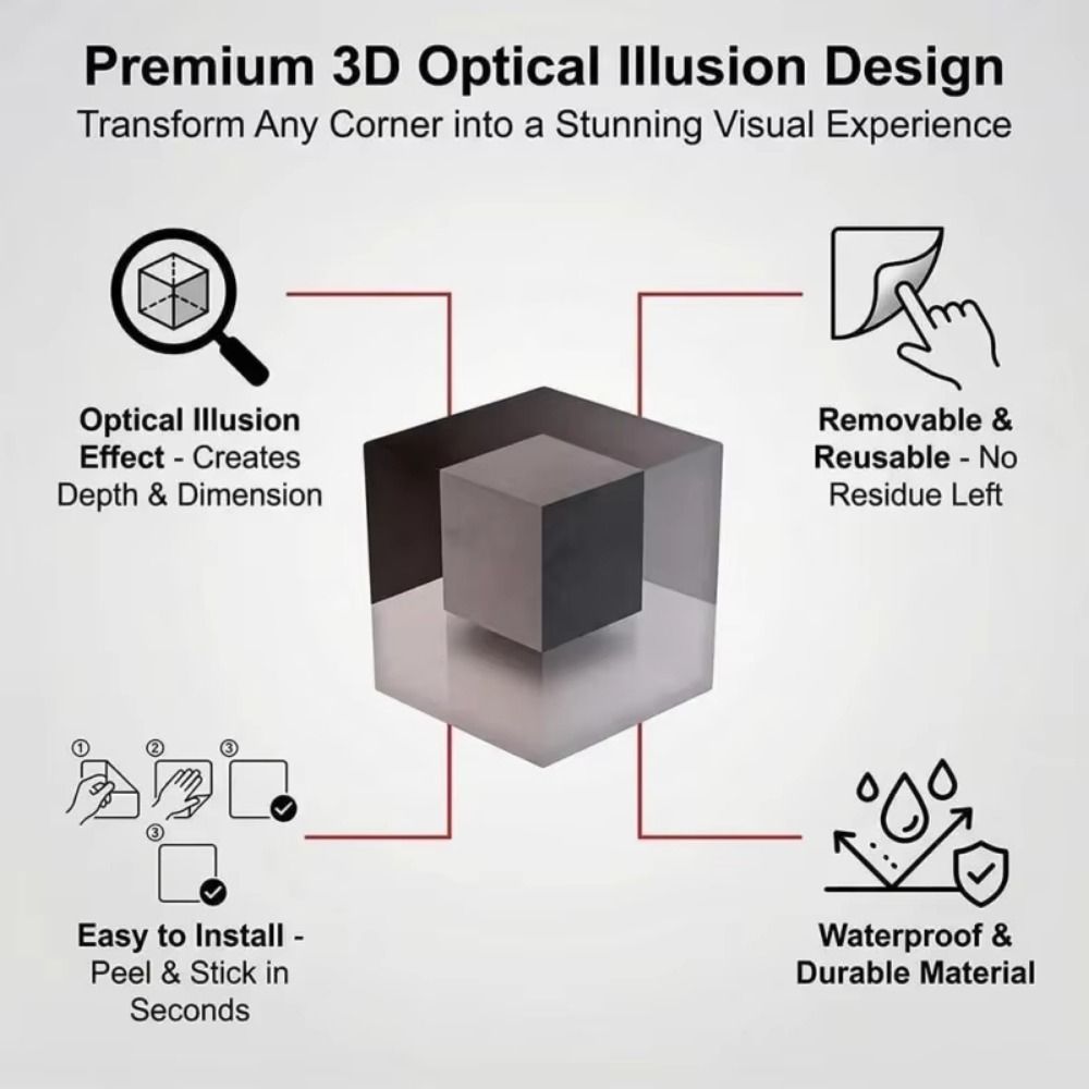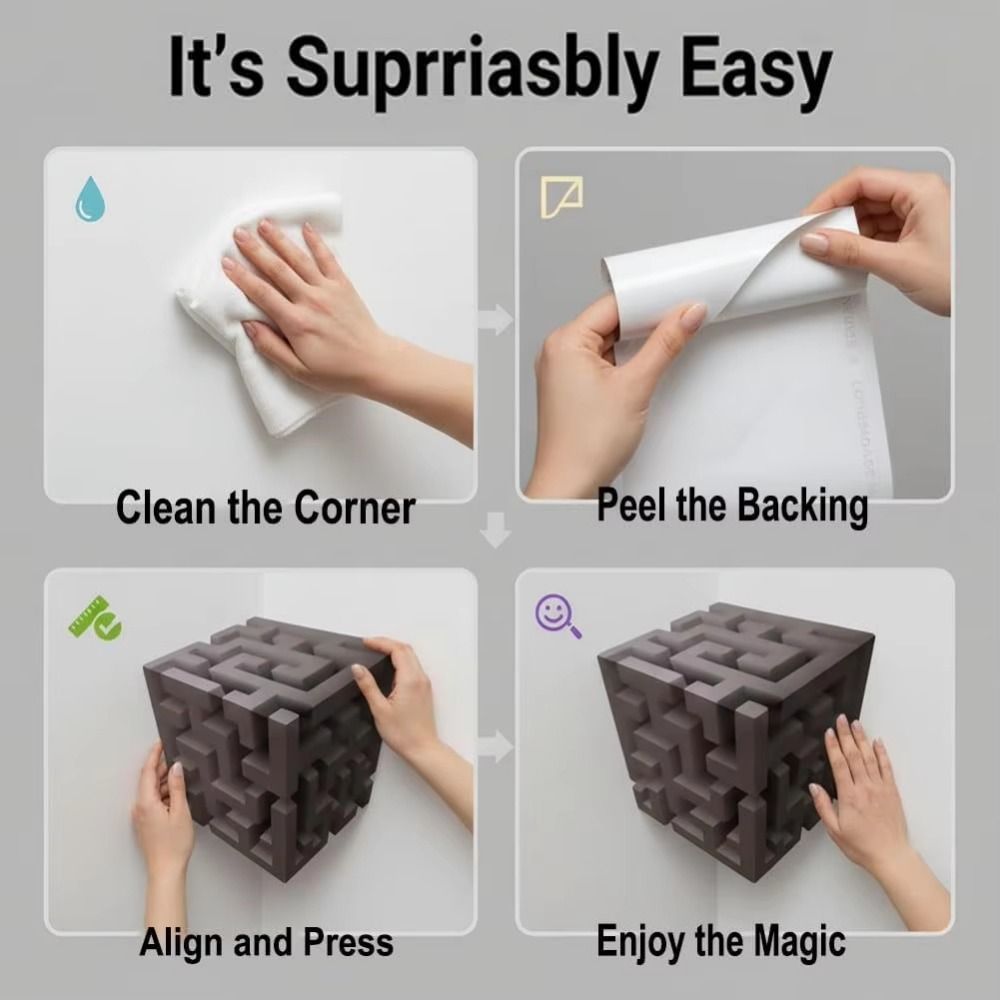 Esquina Imposible De HEFEI Stickers , Arte De Pared 3D Autoadhesivo Extraíble Patrón De Cubo De Laberinto Creativo , Pelar Y Pegar , De Ilusión Óptica , Decoración