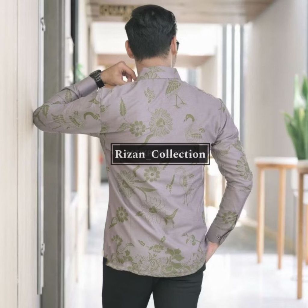 INDRASAKA Hombres Batik Manga Larga Slimfit Moderno