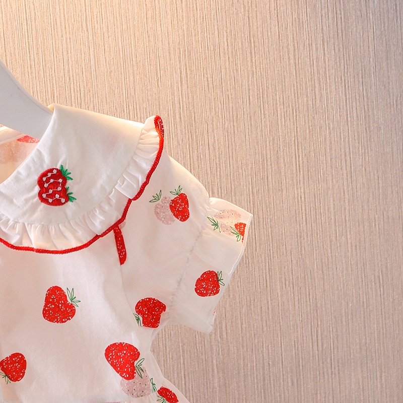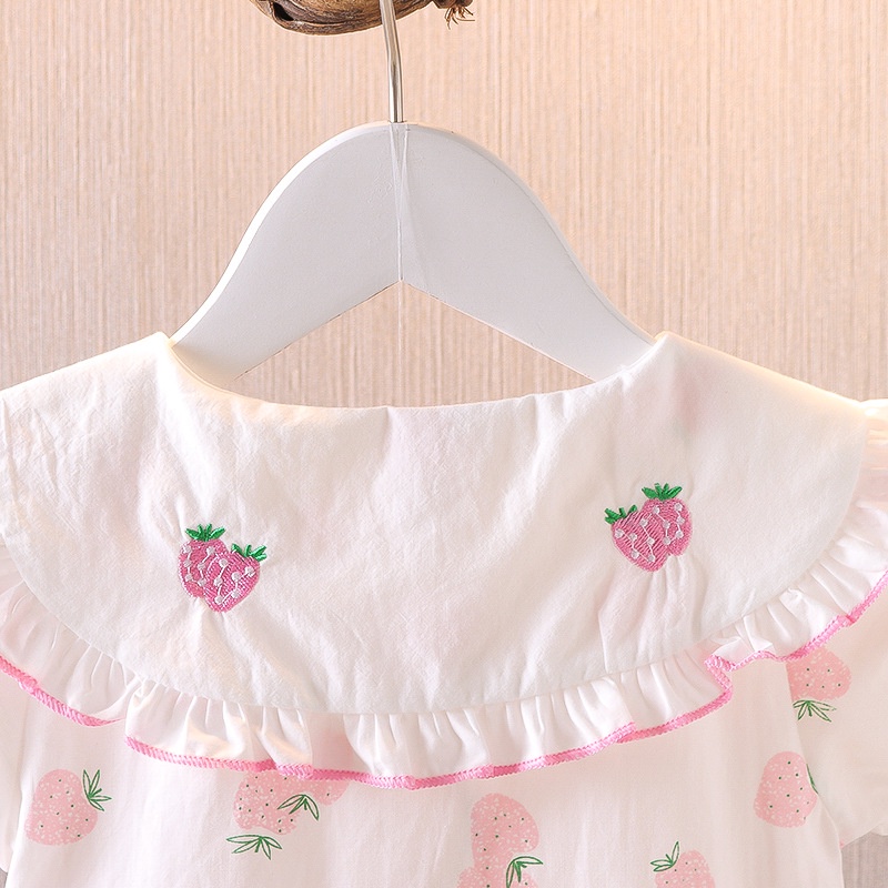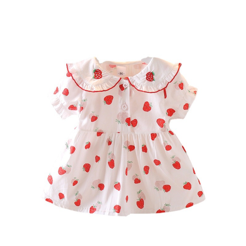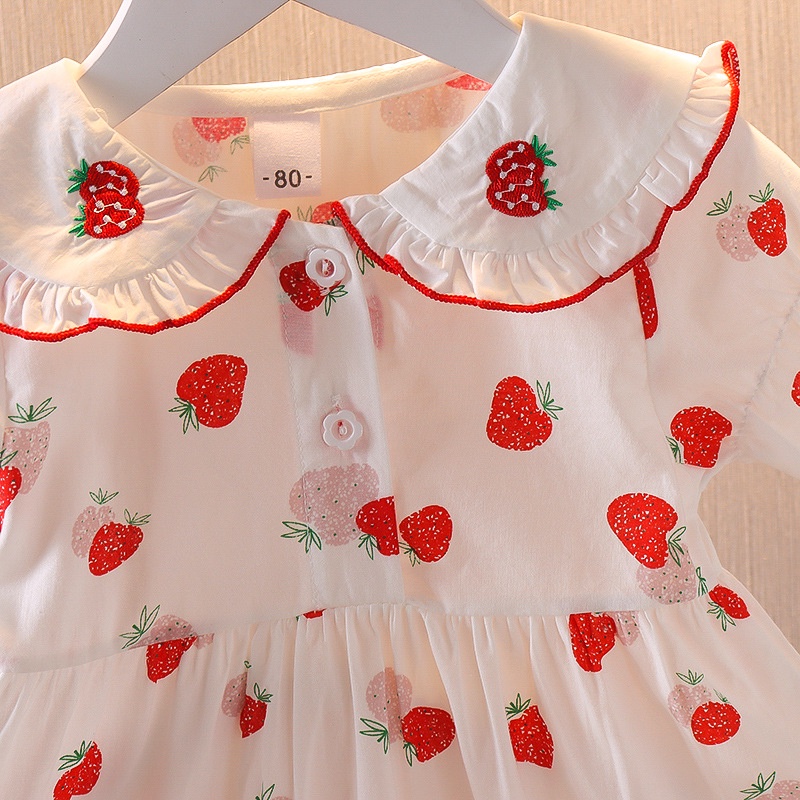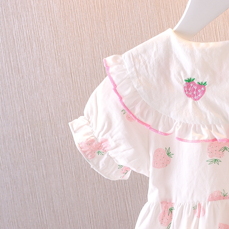 Vestidos Para Bebé Niñas De Princesa 2024 Verano Coreanos Impresión De Fresa Ropa Para Niños