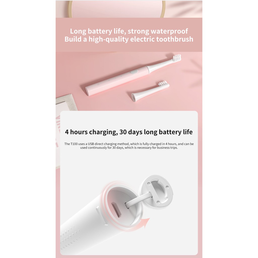 Orignal Xiaomi Mijia Sonic Cepillo De Dientes Eléctrico Adulto Mi T100 Saludable Colorido USB Recargable Impermeable